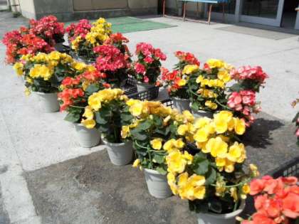 入学式の時に飾られる鉢植えも太陽の光を浴びて元気に育っています。(4月3日)
