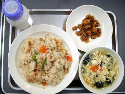 新年度最初の給食でした。ご飯やお味噌汁がたくさんあってみんな喜んで食べていました。(4月9日)