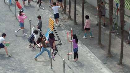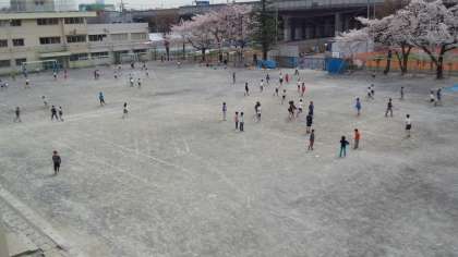 広い校庭で走り回ったり、遊具を使って遊んだりとみんな楽しんでいました。(4月10日)