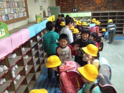 毎日、当番制で1年生のお世話をしています。お世話の仕方も慣れてきました。(4月11日)