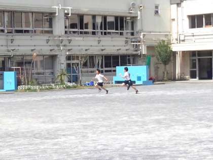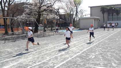学年で2回目の100m走のタイムをはかりました。(4月12日)
