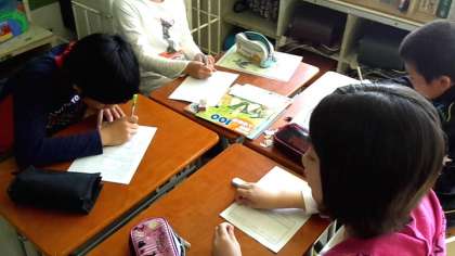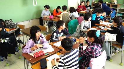 一人一人が考えた学級目標と班ごとに発表しあって話し合っていました。(4月12日)