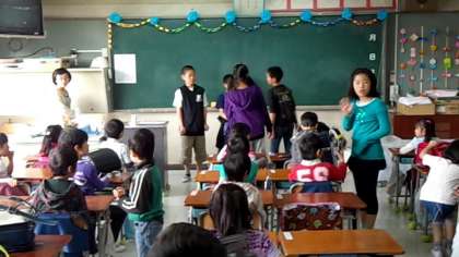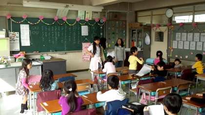 教室では、新しく入学した1年生にいろいろなことを教えています。(4月13日)