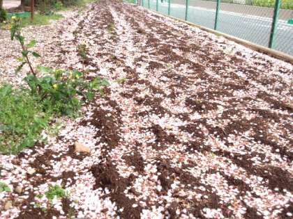 今年の桜も終わりを告げようとしています。サクラのカーペットのようになっています。(4月16日)