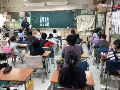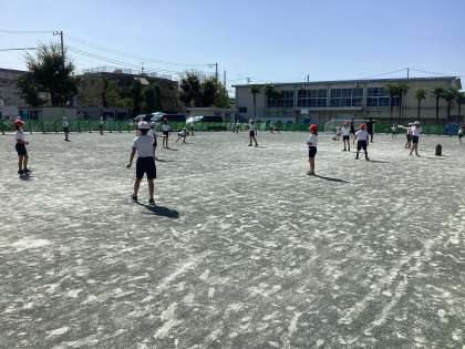 体育の授業では、ドッヂビーや鉄棒をしました。