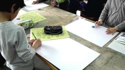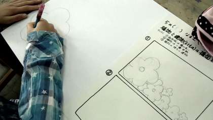 下書きした絵を画用紙に書き写しました。(4月16日)