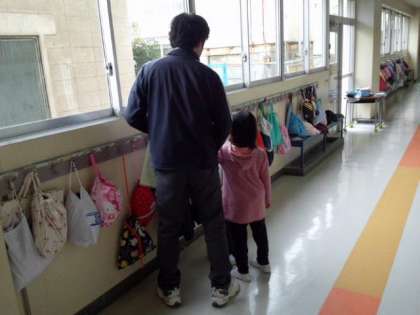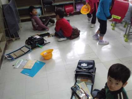 登校したら、自分の荷物を片付けています。(4月17日)