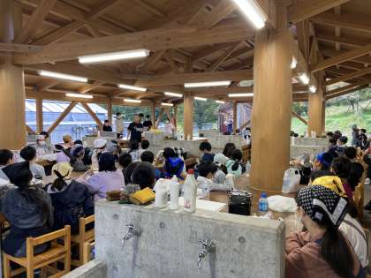 飯ごう炊さんの説明を受けて、カレー作り開始です。 班のみんなと協力して、頑張ります。