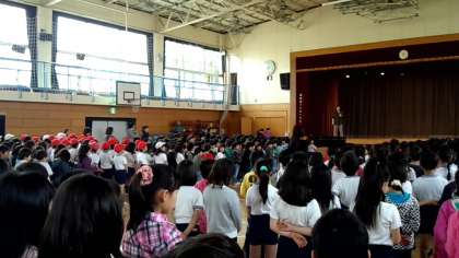 今日は、1年生と一緒に校歌の練習をしました。(4月19日)