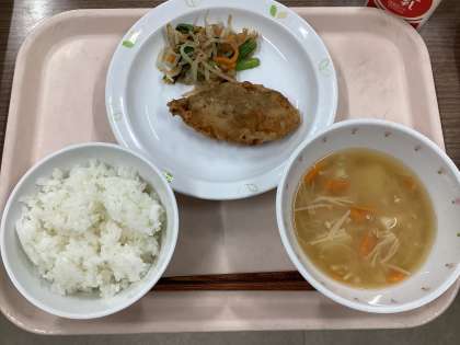 今日のお米は有機米を使用しています。有機農産物の活用促進として購入代金の一部を区が補助し、区立小・中学校の学校給食で使用することになりました。今月から月に1回程度、献立に取り入れる予定です。