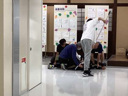 訓練の後は、不審者が侵入した際にどのように対応したら良いか教えていただきました。