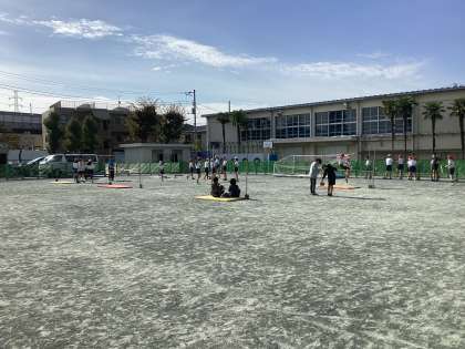 ティーボールは、本塁プレートの後方にバッティングティーを置いてボールを乗せます。
