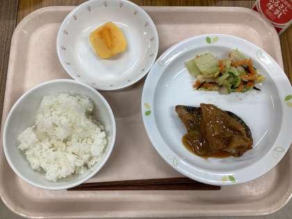 給食室で魚を煮るときは、回転釜という大きなお鍋で300人分くらいをいっぺんに作ります。今日は1時間以上じっくり煮込んだので、よく味がしみていました。一緒に煮たねぎもとろとろで、おかわりしたくなるおいしさです。