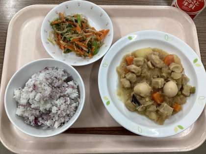 11月24日は、「1(い)1(い)2(に)ほん4(しょ)く」の語呂合わせから「和食の日」と制定されています。今日は、和食の基本のだしを味わえる献立にしました。旬の野菜にだしのうま味がよくしみていました。