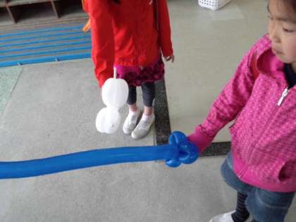 教室で、担任が作った風船を大事に家に持って帰っていました。(4月25日)