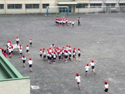 今日は、校庭で各クラスごとに体育をしました。(4月25日)