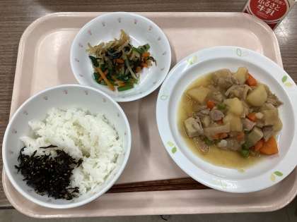 12月5日の給食 公開日 2023/12/05 更新日 2023/12/05 給食 (今日の献立) ・有機米ごはん ・ひじきのふりかけ ・肉じゃがのうま煮 ・野菜ののり和え ・牛乳 肉じゃがは、お肉や野菜、高野豆腐などを入れ、甘めの味付けにしています。具材にだしがよくしみて、子どもたちから人気の一品です。