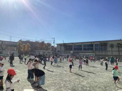 今日は、なわとび週間のため、中休みには、多くの児童が校庭に出て、先生と一緒に練習をしました。