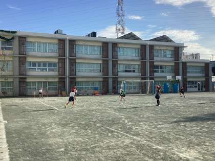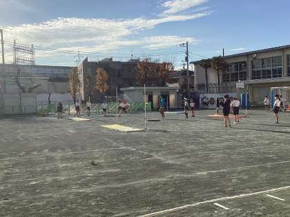 1、2組が1時間目に、3、4組が2時間目に、グラウンドで走り高跳びやソフトボールをしました。