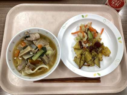 明日の冬至にちなんで、かぼちゃが入ったほうとうと、ゆずの香りがする和えものを作りました。しっかり食べて、寒い冬も元気に乗り切ってほしいです。