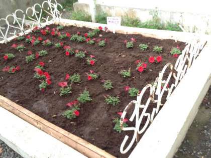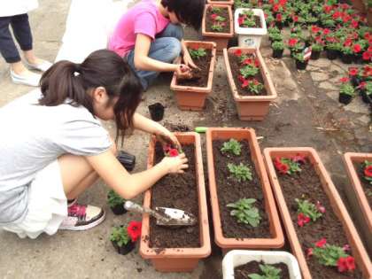 園芸委員会や6年生が、サフィニアを植えて育てています。(5月2日)