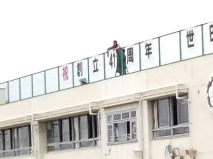 今年度は、開校41年目を迎えます。屋上の表示を付け替えています。(5月9日)