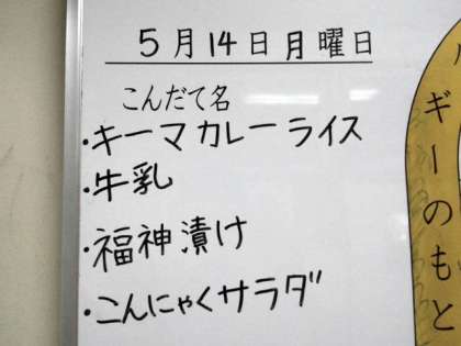 月曜日の献立です。毎日放課後に活動しています。(5月13日)