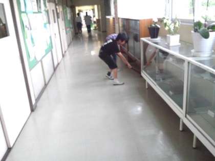 中学年が、1階の場所を一生懸命に掃除していました。(5月15日)