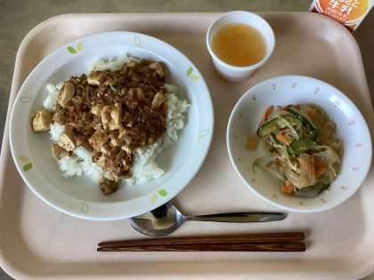 子どもたちは、はじめは新しいクラスでの配膳に緊張した様子でしたが、「いただきます」をすると、いつも通りの食べっぷりを見せてくれました!