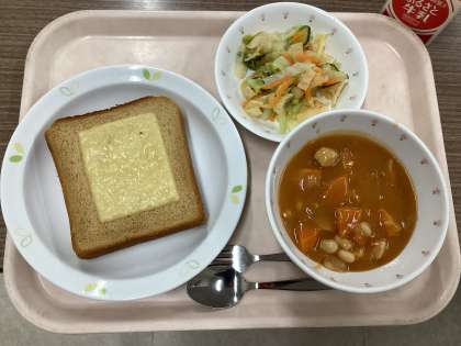 5月15日の給食 公開日 2024/05/15 更新日 2024/05/15 給食 (今日の献立) ・チーズトースト ・ビーンズシチュー ・パリパリサラダ ・牛乳 サラダには、ワンタンの皮を短冊に切って、油で揚げたものをトッピングしています。パリパリの食感がアクセントになり、人気のサラダです。ドレッシングはマスタード入りなので、最後までさっぱりいただけます。