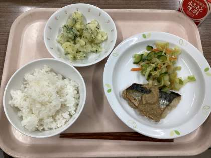 5月16日の給食 公開日 2024/05/16 更新日 2024/05/16 給食 (今日の献立) ・ごはん ・さばのごまだれかけ ・野菜のしょうが風味 ・磯香ポテト ・牛乳 魚のたれは、いりごま、すりごま、ねりごまと、3種類のごまを使っています。甘めの味付けがごはんによく合います。