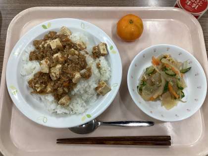 5月30日の給食 公開日 2024/05/30 更新日 2024/05/30 給食 (今日の献立) ・マーボー丼 ・こんにゃくサラダ ・冷凍みかん ・牛乳 今年も冷凍みかんの季節がやってきました。ちょうど暑い日だったので、ひんやりおいしくいただくことができました。