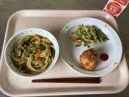 5月31日の給食 公開日 2024/05/31 更新日 2024/05/31 給食 (今日の献立) ・カレーうどん ・じゃがまるくん ・ピリ辛やさい ・牛乳 カレーうどんには、かつお節からとっただし汁を使っています。和風の味わいになり、うどんとの相性もバッチリです。 じゃがまるくんは、ほんのり甘い衣の中に、じゃがいもが丸ごと1個入っています。