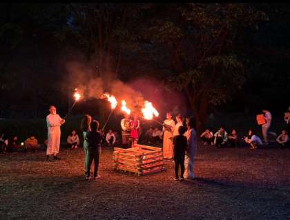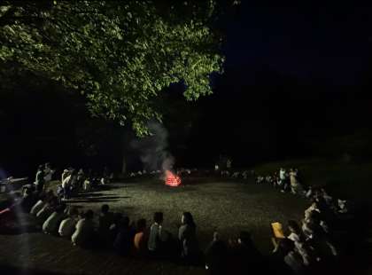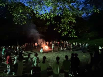 燃え盛る炎の周りで、キャンプファイヤー係を中心にダンスを踊ったりゲームをしたりして、学年みんなで2日目を締めくくりました。