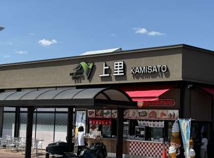 上里サービスエリアでトイレ休憩をとりました。 バスの中ではDVDを視聴しています。