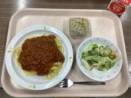 6月10日の給食 公開日 2024/06/10 更新日 2024/06/10 給食 (今日の献立) ・スパゲッティ ミートソース ・フレンチサラダ ・紅茶のカップケーキ ・牛乳 カップケーキには、紅茶の茶葉を練り込みました。ふわっと良い香りが口に広がります。