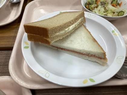 黒砂糖パンにはクリームチーズを、白い食パンにはいちごジャムを挟みました。どちらも人気のある味です。