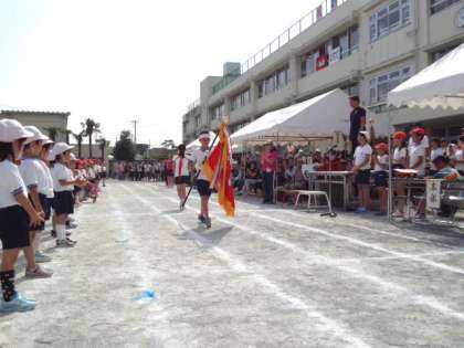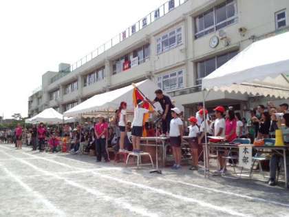応援団の団長が、校長先生より優勝旗と盾を授与されました。(5月26日)