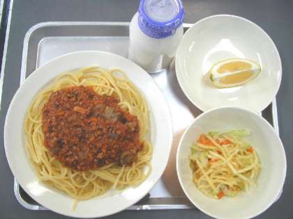 ミートソーススパゲティーが人気でした。みんなたくさんおかわりをしていました。(5月30日)