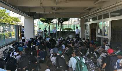 【6年生】社会科見学出発式 公開日 2024/07/05 更新日 2024/07/05 6年生 いよいよ社会科見学が始まります。 暑さ対策のため、ピロティで出発式を行いました。 バスに乗り、これから国会議事堂に向けて出発します。 6年