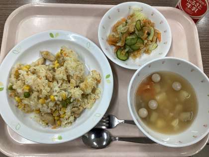 7月9日の給食 公開日 2024/07/09 更新日 2024/07/09 給食 (今日の献立) ・三色ピラフ ・トマポテスープ ・パリパリサラダ ・牛乳 トマポテスープは、トマトとじゃがいもが入ったスープです。トマトの酸味がちょうどよく、食欲がないときでもさっぱりいただけます。トマトは湯むきしているので、苦手な人も食べやすいですよ。
