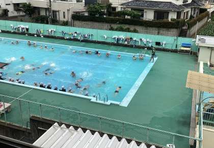【6年生】水泳 公開日 2024/07/10 更新日 2024/07/30 6年生 もう少しで夏休みが始まりますが、水の事故を未然に防ぐ目的で着衣泳を行いました。 万が一があった時のための対処法を学びました。 その後は、バタ足の練習や自分が好きな泳法で泳ぎました。 6年