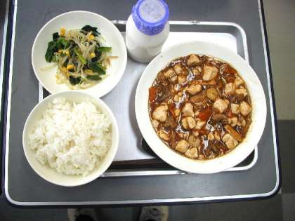今日の給食 公開日 2012/06/01 更新日 2012/06/01 その他の教育活動 暑かったので、ピリカラの四川風豆腐が人気でした。(5月24日) 《今日の食材産地》 たかのこ水煮:福岡 小松菜:東京 にんにく:青森 生姜:高知 人参:徳島 ねぎ:茨城 もやし:栃木 豚肉:神奈川 むきえび:ミャンマー
