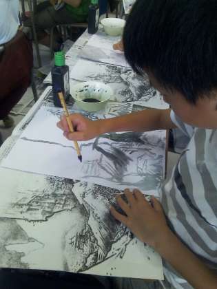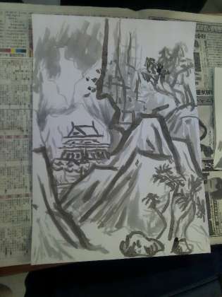 室町時代の文化を学習しました。雪舟の水墨画を参考に、墨の濃淡を生かして描きました。(6月1日)