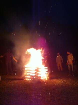 雨が少し降っていますが、みんなとても元気でキャンプファイヤー盛り上がってます!(6月6日19時30分)