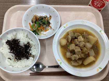 9月9日の給食 公開日 2024/09/09 更新日 2024/09/09 給食 (今日の献立) ・ごはん ・ひじきのふりかけ ・筑前煮 ・野菜ののり和え ・牛乳 ひじきを使ってふりかけを作りました。粉かつおやごまも入って栄養まんてん、ごはんもすすみますね。