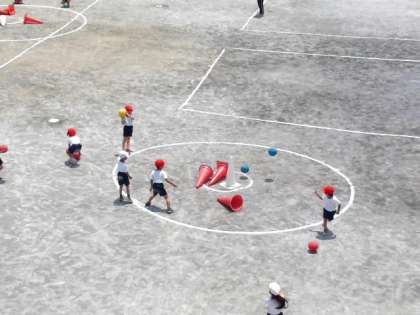 ボールを使ってまとにあてる学習をしました。(6月8日)