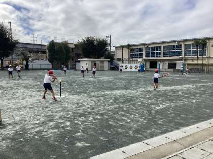 うまく当たらずに空振りしてしまう児童もいましたが、守備の頭上を越して、ホームランだ!と話している児童もいて楽しそうでした。