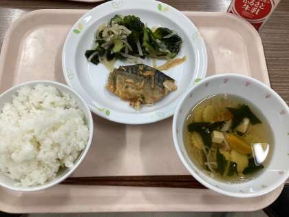 9月26日の給食 公開日 2024/09/26 更新日 2024/09/26 給食 (今日の献立) ・ごはん ・すまし汁 ・さばのみそ漬け焼き ・和風サラダ ・牛乳 和食の献立です。さばは脂がのって、身がふっくらしていました。みそのタレでごはんも進みます。