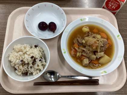 9月30日の給食 公開日 2024/09/30 更新日 2024/09/30 給食 (今日の献立) ・萩ごはん ・肉じゃがのうま煮 ・巨峰 ・牛乳 今日は、秋のはじめに咲く萩の花をイメージした萩ごはんと、旬の巨峰を出しました。季節を感じる献立です。